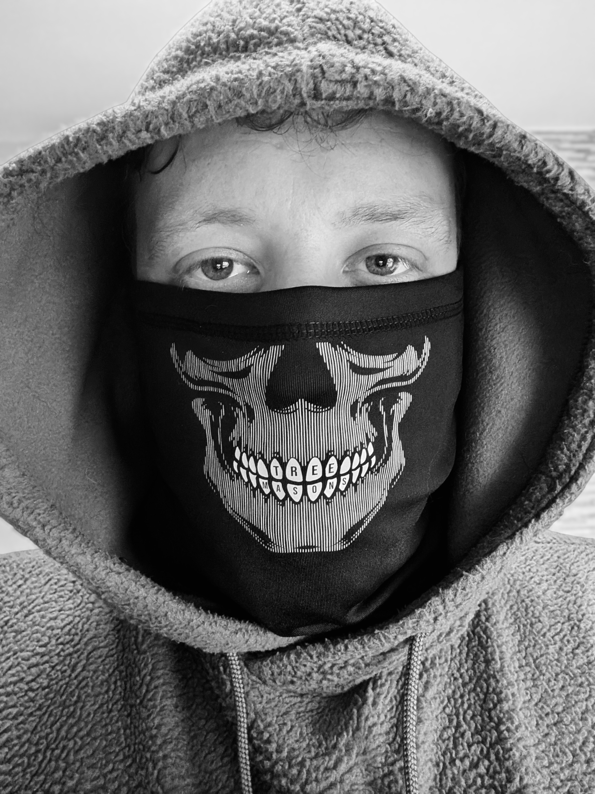 Fleece lined neck warmer with a skull mouth design.